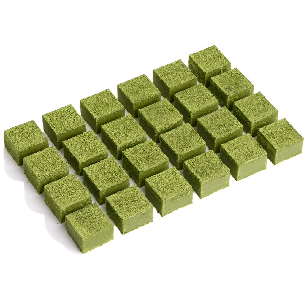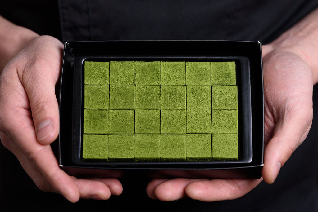 Each box contains twenty-four individual pieces of our earthy and bitter Uji-matcha chocolate nama choco.